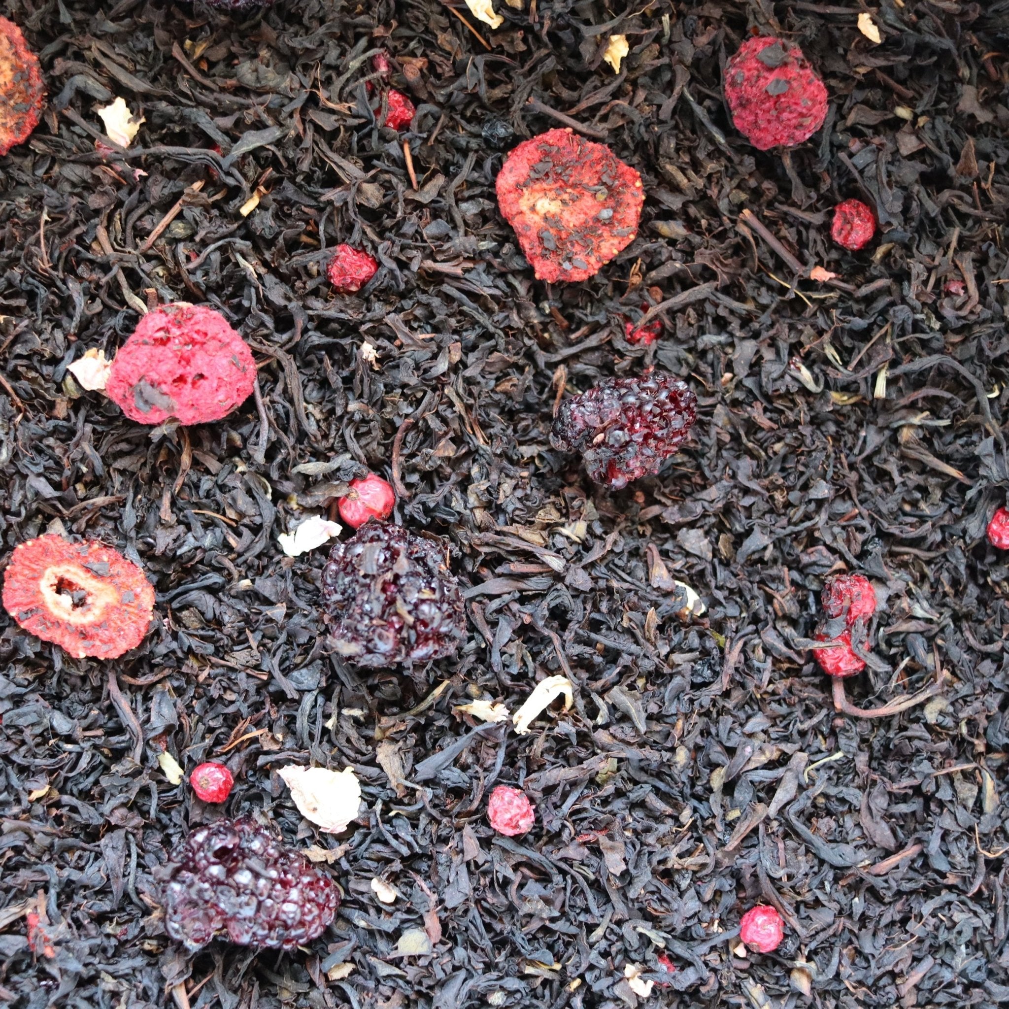 - Ingrédients : Thé noir, fraise, baies de sureau, groseille, framboises, mûres, pétales de rose, arômes naturels