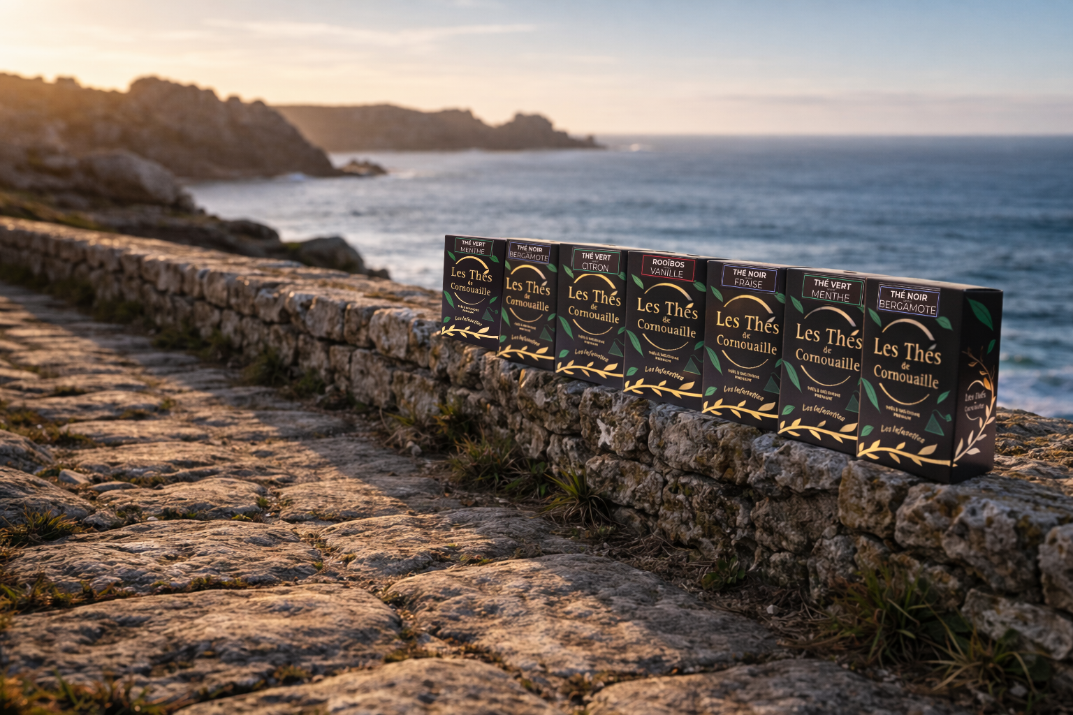 7 étuis, 126 escales gourmandes, l'essence même des Thés de Cornouaille.